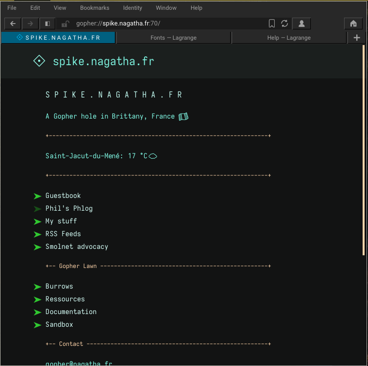 Lagrange è un client grafico molto diffuso, mentre Lynx è una soluzione classica nel terminale. Potrebbe anche piacerti un client multiprotocollo moderno come Chawan, che ti consente di navigare tra vari protocolli dello smolnet e anche sul web senza alcuna interruzione. Sia che tu usi Windows, Linux, macOS, FreeBSD o un altro sistema operativo, esiste un client disponibile.